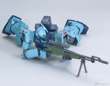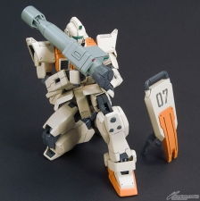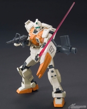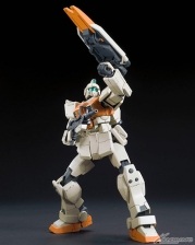 『機動戰士高達 第08MS小隊』中的「陸戰型吉姆」在眾所期待下首次HGUC化!還有同樣首次立體化的繩槍,以及火箭彈發射器、100mm機關槍等豐富的武裝。也附屬了搭載腳架展開機構的盾牌!肩部具有前後可動機構,可以擺出充滿迫力的射撃姿勢。