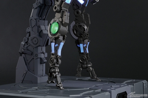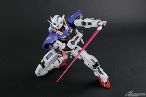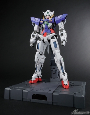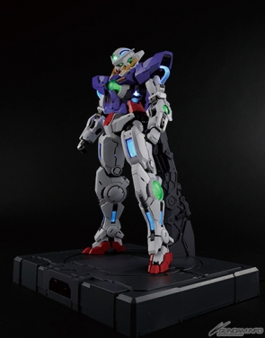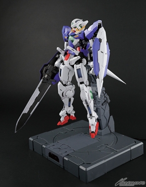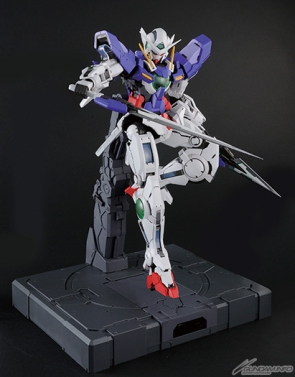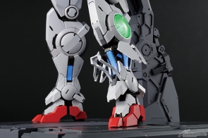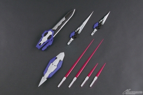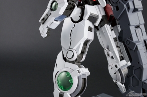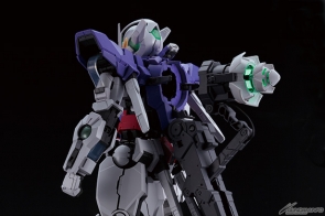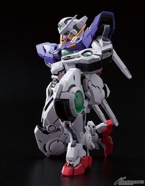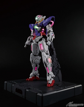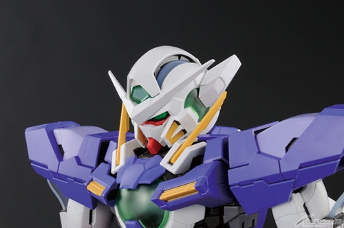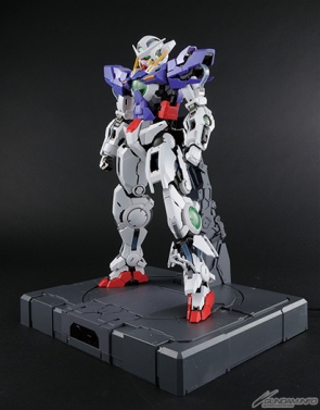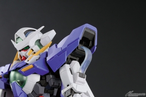 經過考察,在機體各部位露出的管線,內部骨架有以GN爐為起點的粒子傳達構造,再加上裝甲展開機構,可享受如同整備時般的展示方式,更加凸顯其存在感。