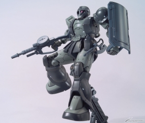 出自「機動戰士高達 MSV」的狙擊型吉姆改以1/100比例首次模型化!承襲設定的造型,同時呈現出最新MG規格的銳利體態,全新造型的特色頭部搭載格鬥戰時的面罩開合機構!特別是狙擊時的姿勢以採用在腕部、胸部等處的高可動機構重現!主要武器「R-4型鐳射步槍」配合MG化採用全新設計,藉由摺疊機構也可重現攜帶狀態!還附有右腕部的「折疊式手槍」等各種武裝!