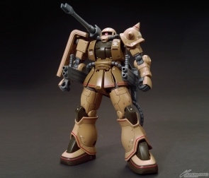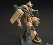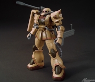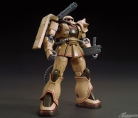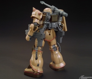 「機動戰士高達 THE ORIGIN MSD」中,渣古半大砲首次HG化!其一大特色的背面武裝,可以選擇裝備加農砲或機關砲,藉由不同裝備可重現不同的衍生機體!還可連接裝備在背包的2把巨槍等多樣重武器,再加上附有手持及攜帶用的近戰專用武器「熱能斧」!