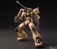 「機動戰士高達 THE ORIGIN MSD」中,渣古半大砲首次HG化!其一大特色的背面武裝,可以選擇裝備加農砲或機關砲,藉由不同裝備可重現不同的衍生機體!還可連接裝備在背包的2把巨槍等多樣重武器,再加上附有手持及攜帶用的近戰專用武器「熱能斧」!