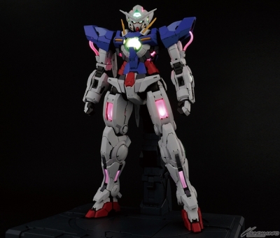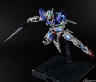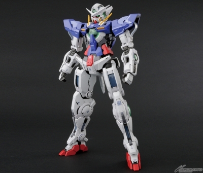 「PG 高達艾斯亞」普通版也一同登場!在機械設計師海老川兼武的監修之下,徹底考證「GN粒子」從原動力的「GN爐」(太陽爐)傳遞至全身的機構!將導引出的設計調整及內部骨架構造具體化!另外,本商品更採用金屬感貼紙,可利用光的反射來表現發光部位!