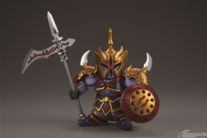 「暴虐之太師」董卓渣古改變造型重新模型化!本體色彩用擁有高級感的金屬光澤射出成形色,粉色透明的特效零件也改為加入金粉!內附深綠成形色的部隊兵(董卓軍)3台!包裝盒繪也重新繪製!