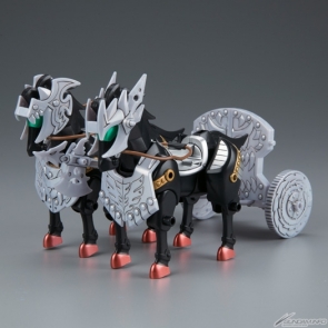 「白馬將軍」公孫瓚Ez-8改變造型重新模型化!鎧甲成形色配合角色形象進行變更,還有內附能夠換裝成各種型態的四神鬼甲戰車!四神馬甲的成形色則是改為銀色!包裝盒繪也重新繪製!