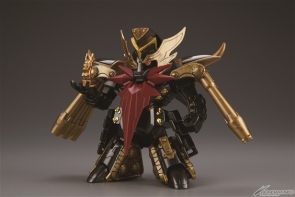 「壽春之僭帝」袁術瑞莎改變造型重新模型化!本體基調色由灰色變更為銀色,以前深灰色的部分則採用金屬光澤射出成形!與袁紹龍飛為相同的配色,合體後的「龍飛」型態則更進一步提升了質感!內附黃色透明的天鎧裝!包裝盒繪也重新繪製!