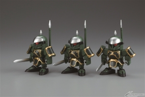 「鎮江將軍」胡軫强人改變造型重新模型化!本體基調色配合角色形象進行變更,內附深灰色成形色的部隊兵(董卓軍)3架!包裝盒繪也重新繪製!