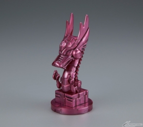 河北之雄、袁紹龍飛改變造型重新模型化!以前深灰色的部分變更為與袁術瑞莎相同,呈現高級感的成形色,,合體後的「龍飛」型態則更進一步提升了質感!內附以暗黒光輝為概念的金屬紫玉璽!包裝盒繪也重新繪製!