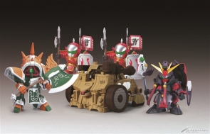 「不動的怪力」典韋阿席瑪和「冷徹的暗殺者」賈詡阿斯塔隆改變造型重新模型化!兩武將的本體色皆配合世界觀改為更加沉穩的配色,賈詡阿斯塔隆的眼睛也變更為BB戰士標準規格!內附的「攻城兵器・部隊兵」也同樣配合世界觀改為更加沉穩的配色,金屬光澤成形的合體武裝6種(甲)和「黄蓋老虎&合體武裝6種(乙)」內附的(乙)組合起來可重現12合體巨大武裝!包裝盒繪也重新繪製!