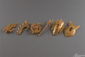 「身經百戰的老將軍」黄蓋老虎改變造型重新模型化!部分使用金屬光澤射出成形,成為充滿質感的本體色!內附金屬光澤成形的合體武裝6種(乙),「典韋阿席瑪 賈詡阿斯塔隆 攻城兵器組&合體武裝6種(甲)」內附的(甲)組合起來可重現12合體巨大武裝!包裝盒繪也重新繪製!
