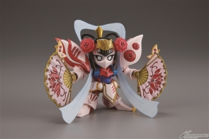 為了紀念「BB戰士三國傳」10週年,過去只有在Blu-ray BOX才能夠取得的夢幻模型“俏麗女將軍”貂禪卡碧尼改變造型重新模型化!成形色採用更為華麗鮮艷的顏色,眼睛的設計則改為BB戰士標準規格!內附配合貂禪卡碧尼形象的紫色武將座!再加上包裝盒繪也重新繪製!