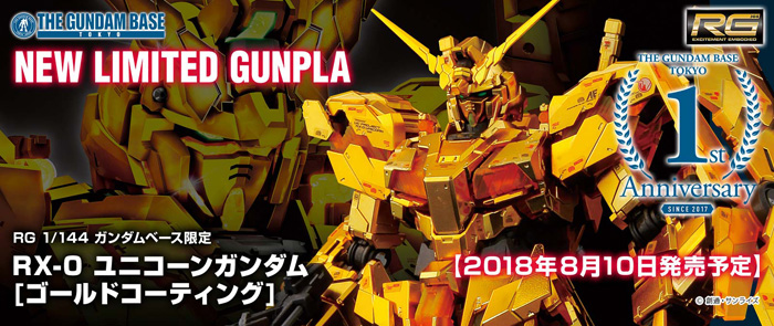 位於東京台場「DiverCity Tokyo Plaza」7樓的高達模型複合設施「THE GUNDAM BASE TOKYO(高達東京基地)」,8月10日(五)起開始販售高達東京基地限定高達模型「RG RX-0 獨角獸高達[金色鍍膜]」。價格為8,640日圓(含稅)。