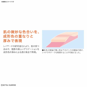 藉由分色技術的研究進化,藉由改變成型色的厚度,再現肌膚的透紅和陰影的美麗漸層色。泳裝將成型色變更為充滿運動感的深藍色,並使用有釉彩般光澤的成型色,表現出更加寫實的質感。