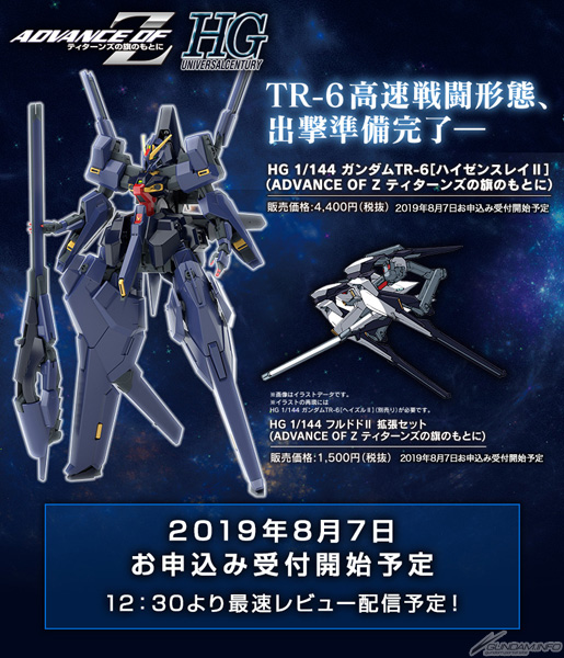 登場自『機動戰士Ζ高達』外傳「ADVANCE OF Ζ~泰坦斯的旗下~」的「HG 高達TR-6[海瑟斯雷II]」跟「HG 弗多德II 擴充組」高達模型,決定8月7日(三)起開始接受預購。