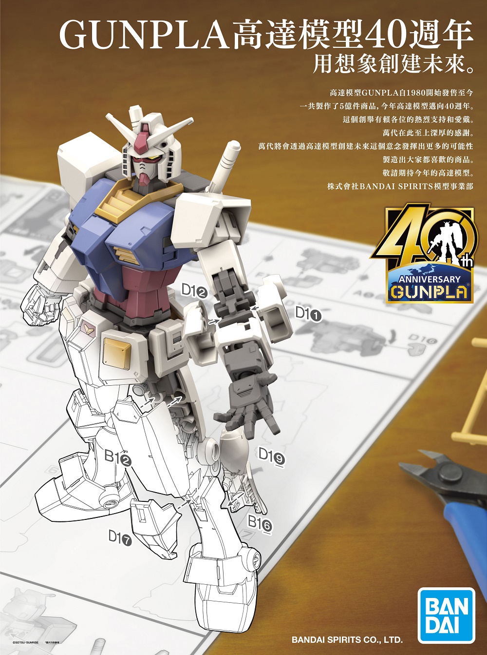 高達模型GUNPLA自1980開始發售至今,一共製作了5億件商品,今年高達模型邁向40週年。這個創舉有賴各位的熱烈支持和愛戴。萬代在此至上深厚的感謝。萬代將會透過高達模型創建未來這個意念發揮出更多的可能性,製造出大家都喜歡的商品。