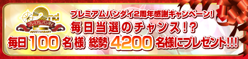 本次活動將針對Premium Bandai會員以及活動期間中登錄申請成為Premium Bandai會員的民眾實施,於特別網頁參與活動的話,就有機會抽選出毎日100位贈送豪華獎品,或是Premium 點數(100P)。