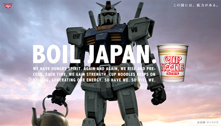 廣告内容是世界性日本代表品牌Cup noodle與Gundam,強烈地傳遞沸騰勇氣的「BOIL JAPAN.」訊息。