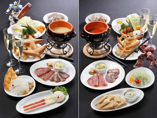 迎賓飲料 / 聯邦瑞士火鍋(白色奶油湯底、熟蔬菜、肉類拼盤) / 光束劍條 / 前菜拼盤 / 附聯邦標誌麵包拼盤 / 大氣圏突入飯 高達