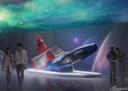 寬度達17m的巨大圖像迎接遊客。在地球軌道上展現獨特浮遊感的高達十分醒目。