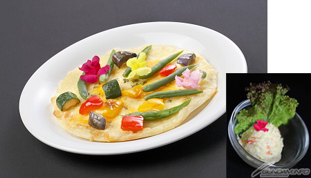 最後一幕刹那與瑪莉娜相會,以量子型00高達為形象製作的起司披薩。頂上裝飾食用花!