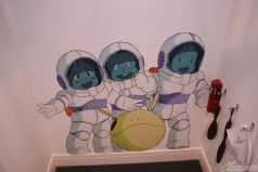 房間內的浴室中,設有裝飾著馬沙等角色名台詞的淋浴間!浴缸旁的牆面則掛著馬沙專用魔蟹與戰蟹(愛爾蘭魔蟹)等機體的插畫!