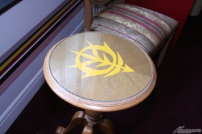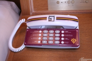 寢室內的電話為Zimmad公司製!另外還有馬沙的太陽眼鏡和繪有吉翁公國軍標誌的桌子等,滿載令粉絲們大呼過癮的室內設計!