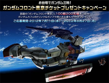 只要註冊成為PREMIUM BANDAI的會員,並訂閱高達系列的商品情報mail magazine「GUNDAM SHOPPING NEWS」,就有機會抽中包含「GUNDAM FRONT東京」入場門票、「GUNDAM Café Diver City Tokyo Plaza店」的飲料和高達燒,以及店內限定的橡膠製吉祥物玩偶,總計抽出100組200名贈送好禮。