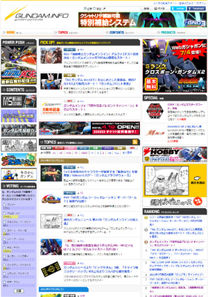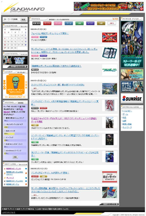 GUNDAM.INFO的著眼點在情報發布的正確性和速度性上。因此,為了要對應每天的更新而導入了BLOG系統,SUNRISE公司也為此奠定體制,設置專門的負責人。另外,為了更將普及高達作品,而設計準備了許多原創性的內容。