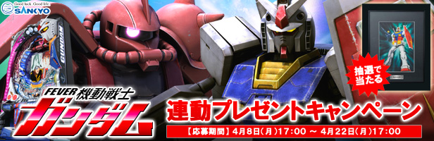 「フィーバー機動戦士ガンダム」がいよいよ4月15日(※地域により異なります)より全国のパチンコホールで導入されることを記念して、本日より 「ガンダムインフォ」と「フィーバー機動戦士ガンダム」の連動プレゼントキャンペーンがスタート!