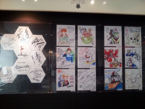 為慶祝「機動戰士高達 藍光紀念盒裝版」發售,在東京・秋葉原營業的高達官方咖啡廳「GUNDAM Café」,展出了許多和高達有因緣的漫畫家們所提供的親筆簽名板。