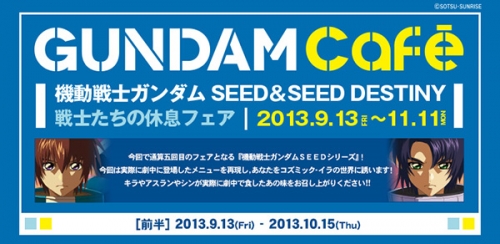 祭典活動於「秋葉原店」、「東京車站店」、台場「東京台場購物廣場店」全店實施,期間中菜單會販售和『機動戰士高達 SEED』及『機動戰士高達 SEED DESTINY』相關的餐點、飲料。本次主題為「讓戰士們喘一口氣」,以大天使號「艦内餐」為造型的餐盤等等,盡情享用重現劇中用餐場景的餐點吧。