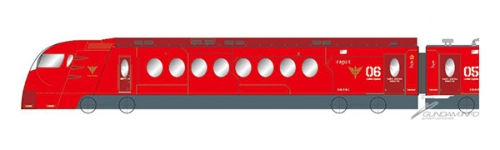 特急Rapit 1編成車輛外觀將改變為以登場人物弗爾・伏朗托所率領的「新自護」為意象的紅色,各處都有表現「機動戰士高達UC」世界觀的設計。
