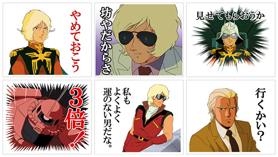 這次推出的高達系列第4彈LINE貼圖,以人氣角色「馬沙・亞斯洛布」為題材,收錄全40種從『機動戰士高達』到『機動戰士高達 逆襲的馬沙』登場的馬沙插圖及MS,以及令人印象深刻的台詞。