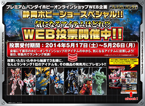 BANDAI官方購物網站「PREMIUM BANDAI」正在舉辦WEB投票企劃,請大家從5月17日(六)、18日(日)舉辦的「第53回 靜岡模型展」所展示的「HOBBY ONLINE SHOP」商品中,選出最令人在意的商品。