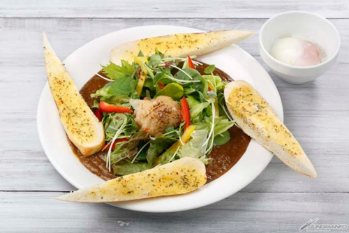 豐富蔬菜的沙拉咖哩配上香蒜麵包!即使沒有食欲也可以吃的開心!