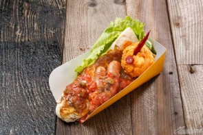 滾燙牽絲起司與咖哩的結合!還有多汁的香腸!