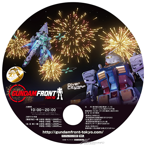 圓扇兩側的圖案,一面是現正於GUNDAM Café舉辦的「灼熱的咖哩祭典」菜單,另一面是看向夜晚天空煙火的「實寸大高達立像」,而他的視線範圍內還有著全新裝備的獨角獸高達…?
