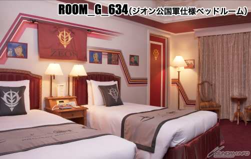特別房裡最醒目的便是「高達」和「馬沙專用渣古」充滿震撼力的大牆面!甚至還原聲重現了動畫中的「覺醒吧!國民們!」,以及基連總統打來的MORNING CALL!連小細節也不放過的講究裝潢,絕對讓人大聲驚嘆!