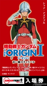 東京・台場「Diver City Tokyo Plaza」7樓營業中的「高達東京最前線」付費區入場門票,設計將變成即將在2月28日(六)開始特映會的『機動戰士高達 THE ORIGIN I藍眼的卡斯巴爾』造型。