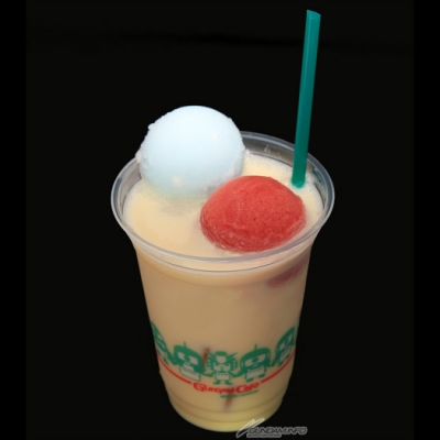 TRY ON3高達的製作者,阪井湊們出身地的大阪名產飲料。以水蜜桃汁作為基底的綜合果汁,配上萊姆和血橙的雪寶。