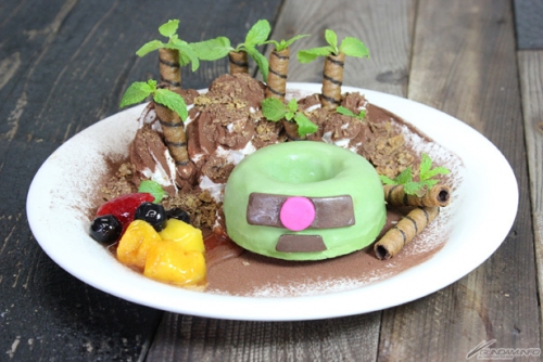 本餐點是使用了GUNDAM Café的新甜點「渣古甜甜圈」的甜點拼盤,重現了賈布羅的森林。