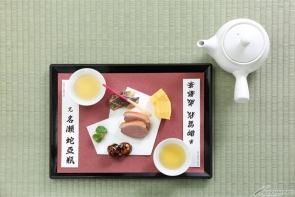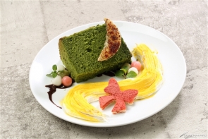 【右】<秋葉原>突發之吻~抹茶戚風蛋糕佐南瓜醬~ 價格:1,058日圓(含稅)