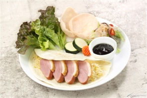 【左】<秋葉原>引導之物與回應之物~墨西哥薄餅、蝦仙貝、燻鴨肉、泰式涼拌冬粉的無國籍料