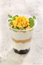 以雅朵拉特別編織的一對手鍊為概念的甜點。玉米的香甜令人想起故郷火星。仔細攪拌後享用吧。