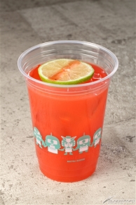 以廢棄人的記號紅色線條為概念的一杯。對喜歡重量訓練的昭弘來說是含有豐富維他命的體力回復