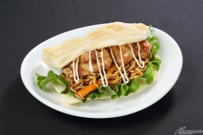 【左】高達模型燒DX(豪華版) 炒麵&炸雞塊 價格:300日圓(含稅) ※