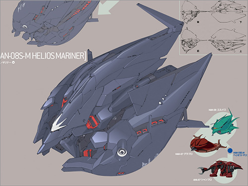 本機是火星獨立自護軍為了投入INLE奪還作戰,而將預想作為「MAN-08 艾爾梅斯」後繼機,所開發的新人類專用MA「MAN-08S 海力傲斯」,進行水中用改造的機體。經過改造後,達成機體氣密性和各種推進器在水中的應對,左右莢艙還搭載了「電磁流體誘導推進器(MHD)」。