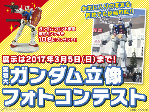 攝影競賽中可以投稿自己中意的照片且不限張數,最後將從投稿者中選10名,贈送附屬使用和實寸大高達立像相同專用貼紙,GUNDAM FRONT TOKYO最後的限定高達模型「HG 1/144 RX-78-2 高達 Ver. GFT REVIVE EDITION」。將實寸大高達立像從前、後,早、晚、點燈等各種場景拍下照片,把回憶化為照片。