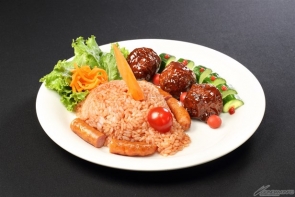 【左】蹂躙宇宙的人們~馬沙渣古・米飯和肉丸子的中華風餐盤~ 價格:1,296日圓(含稅)