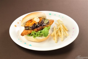 【左】天上人漢堡~白肉魚蔬菜漢堡 佐塔塔醬~ 價格:950日圓(含稅)