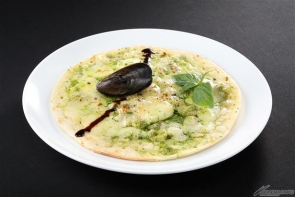 【左】闇を射抜く弾丸~たっぷりチーズのバジルピザ~ 価格:1,080円(税込)